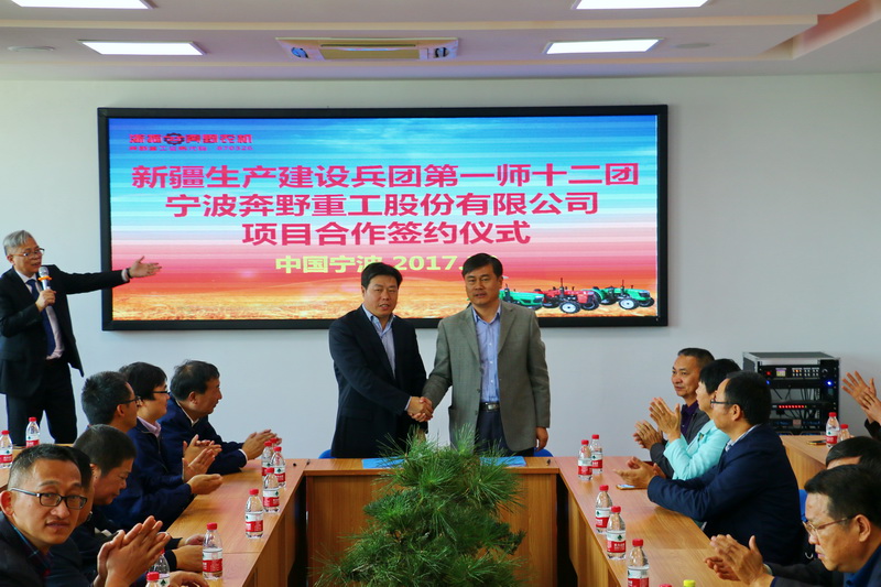 在三樓會議室,全體經(jīng)銷商朋友見證了寧波奔野重工股份有限公司與新疆生產(chǎn)建設兵團第一師十二團舉行的項目合作簽約儀式,為公司進一步拓展新疆市場、擴大產(chǎn)能、配合國家政策、做好援疆工作提供了可靠的保證。