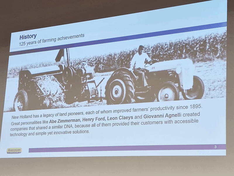 NEW HOLLAND比利時(shí)工廠是工廠考察的第二站。工作人員介紹了該品牌隸屬于CNH INDUSTRIAL集團(tuán),該集團(tuán)旗下有三大板塊業(yè)務(wù):農(nóng)業(yè)版塊、工程機(jī)械版塊、金融版塊。其中農(nóng)機(jī)版塊除了CASE、NEW HOLLAND,還有斯太爾STEYR品牌。創(chuàng)建于1895年的NEW HOLLAND一直堅(jiān)持創(chuàng)新:做出歐洲第一臺(tái)自走式收割機(jī),目前葡萄收獲機(jī)是全球第一。在貼近用戶(hù)和市場(chǎng)的理念指導(dǎo)下,紐荷蘭在全球有33個(gè)工廠,2000多家經(jīng)銷(xiāo)商,銷(xiāo)往全球170個(gè)國(guó)家和地區(qū)。