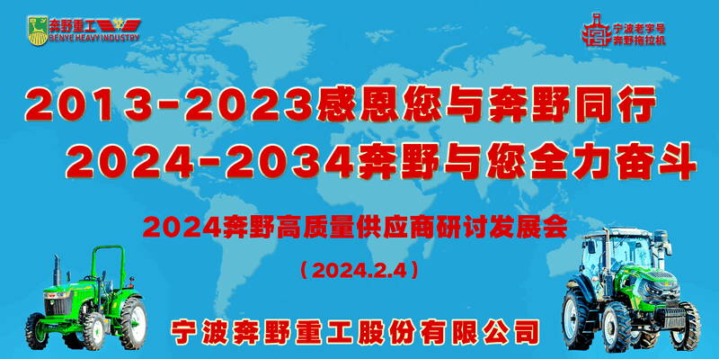 王興洪感慨地說:2013年我們從一個猶如70~80年代舊廠房,簡易場地上起家發(fā)展,資金、人才、技術(shù)、資源都短缺,政治資本幾乎為零,通過學(xué)習(xí)不間斷地自強和發(fā)展走到今天具備現(xiàn)代化生產(chǎn)經(jīng)營的規(guī)模確實非常的不容易。時代不會幫你發(fā)展,只有你自己把握正確的方向、服務(wù)、規(guī)劃、理念,只有這樣社會才能認可你,行業(yè)認可你。10年的風(fēng)風(fēng)雨雨、大風(fēng)大浪,各種困難我們都經(jīng)歷過。期間有多少供應(yīng)商在背后默默地支持我們的發(fā)展,又有多少人在背后說三道四,我們都一一做到一清二楚。從拖拉機的價值成本上來講,最大的就是動力,發(fā)動機這一塊。那時候新柴股份,昌博機械等就這樣的全力支持我們,現(xiàn)在想想那時候的支持真的是需要膽量和遠見,貨一來就是幾百萬甚至上千萬。這10年我們什么都經(jīng)歷過,比如我200%的放心讓員工去干,結(jié)果呢,培養(yǎng)了一批競爭對手。每次的困難打擊我們都一一排除,體現(xiàn)了我們奔野人的自我降壓、解圍能力和強大內(nèi)心。10年來到今天我們一直在打造基礎(chǔ),同時也得到了行內(nèi)的基本認可,也做到了浙江省不說第一也是標桿性贊譽。從品牌向往到真正落地,從迪爾手里爭取回奔野品牌,又做到了寧波老字號,正在爭創(chuàng)省級老字號,中華老字號。說實話要獲得制造業(yè)的老字號真的不容易,可能我們是行業(yè)中的首創(chuàng)。奉化人說我是“傳奇”。回想10年來到現(xiàn)在,我自己也覺得我是個傳奇,但是這個傳奇離不開在座各位的大力支持,特別是從0-1,開始到現(xiàn)在這一階段的支持,那個時候的支持,像黃金的含金量99.99%。在此我再次代表全體員工及家人,衷心地感謝大家!2023年我們研發(fā)了多款產(chǎn)品上市,未來的主力產(chǎn)品也已經(jīng)下地試驗,改進完善后既可以量產(chǎn),經(jīng)銷商紛紛打款訂貨。知識產(chǎn)權(quán)保護與打擊方面也取得了顯著成績,扎實的業(yè)績基礎(chǔ)奠定了奔野未來的發(fā)展,希望各位企業(yè)老板能對我們更加有信心,與我們一路同行。