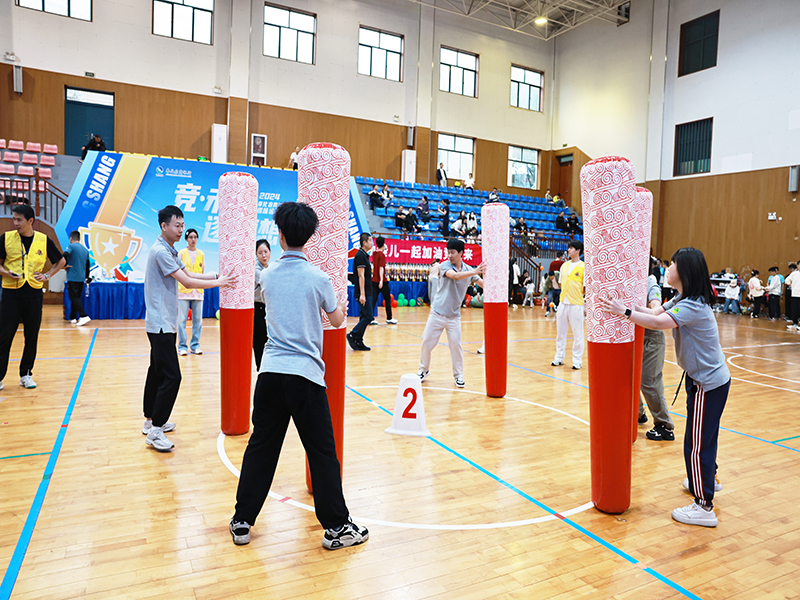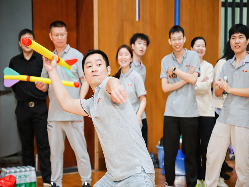 “一飛沖天”項(xiàng)目充滿了挑戰(zhàn)性與刺激性。大家站在起點(diǎn),深吸一口氣,然后猛地發(fā)力,手中的泡沫標(biāo)槍如同展翅的雄鷹般沖向空中。在空中劃過(guò)一道優(yōu)美的弧線,周?chē)年?duì)友們一邊為正在比賽的隊(duì)員加油打氣,整個(gè)項(xiàng)目現(xiàn)場(chǎng)都洋溢著積極挑戰(zhàn)、超越自我的熱烈氛圍。