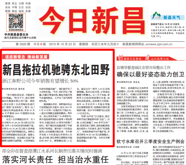 新昌新聞網(wǎng)記者 俞偉波 “再仔細(xì)檢查檢查,不能留有任何瑕疵。”昨日下午,浙江奔野拖拉機(jī)制造有限公司門前,質(zhì)檢人員正在給7臺(tái)農(nóng)用拖拉機(jī)進(jìn)行出廠前的“全身體檢”。原來,這7臺(tái)拖拉機(jī)將遠(yuǎn)赴青島,參加10月26日開幕的2015中國國際農(nóng)業(yè)機(jī)械展覽會(huì)。