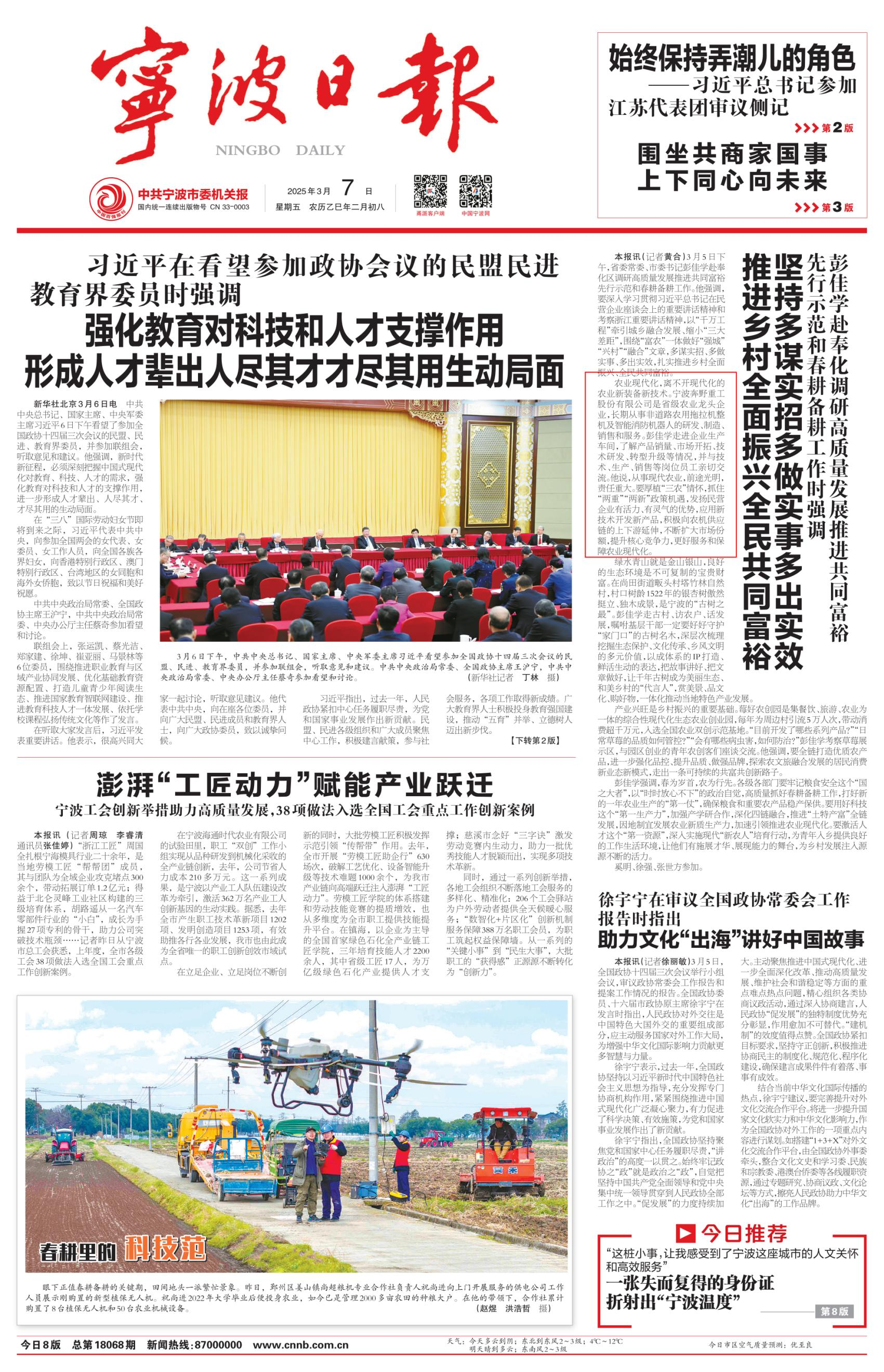——《寧波日報》3月7日一版