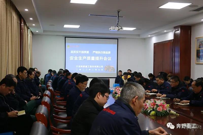 2022年2月7日,大年初七上午10點,虎年春節(jié)后開工的第一天,剛忙碌完早上的開工儀式,寧波奔野重工股份有限公司就召開由公司管理部、財務(wù)部、銷售部、采購部、物資部、生產(chǎn)部參加的安全生產(chǎn)與質(zhì)量提升大會,由董事長王興洪親自主持。