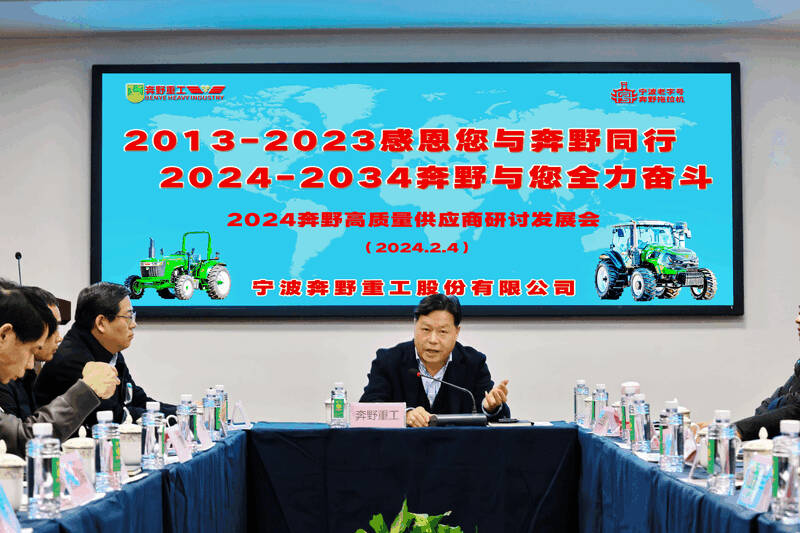 2024年2月4日,“2024 高質(zhì)量供應(yīng)商研討發(fā)展會”在寧波奔野重工股份有限公司隆重召開,會議的主題是“2013-2023感謝您與奔野同行 2024-2034奔野與您全力奮斗”,來自全國各地 20家供應(yīng)商及奔野重工技術(shù)、銷售、采購、品質(zhì)、管理、生產(chǎn)、財務(wù)等部門中層人員共60多人歡聚一堂共商合作發(fā)展大計。