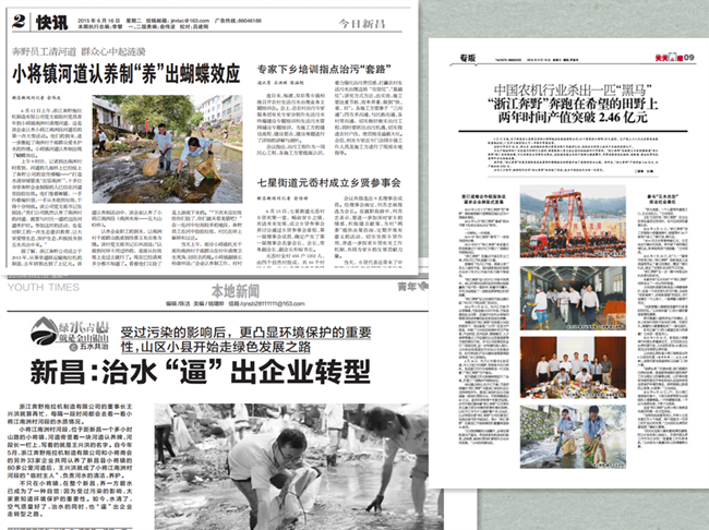 近來,公司不斷組織開展了一系列清河活動、護(hù)河宣傳,制作了沿河宣傳欄并指定河長及責(zé)任人,組織召開了長效治理河道的協(xié)調(diào)會,在周邊中小學(xué)開展了護(hù)河志愿者招募等活動,受到了廣大老百姓的好評和社會各界的關(guān)注。公司此舉受到縣委縣政府的高度贊揚,9月16日市委副書記尹永杰在小將江南洲村河段實地考察時也講到,“新昌社會化治河模式找到了發(fā)動群眾參與、實現(xiàn)長效治水的好路徑。市里要抓緊研究借鑒和推廣這個做法”,而浙拖奔野公司恰恰就是這個做法的先例。