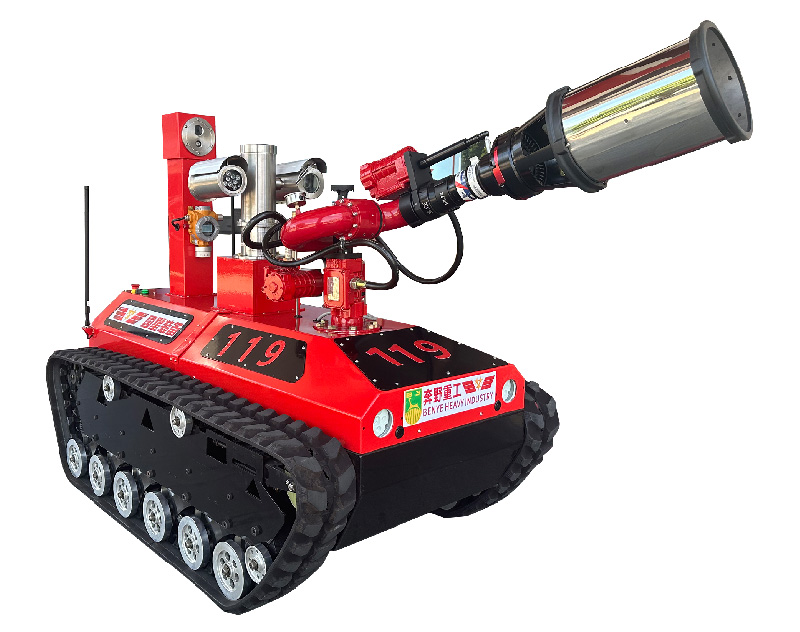 本消防機(jī)器人適用于部分火災(zāi)現(xiàn)場(chǎng)的火勢(shì)控制、洗消、降溫、環(huán)境信息采集等。本消防機(jī)器人具有防爆,越障能力強(qiáng),拖拽能力強(qiáng)的特點(diǎn)。